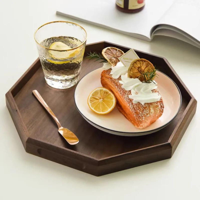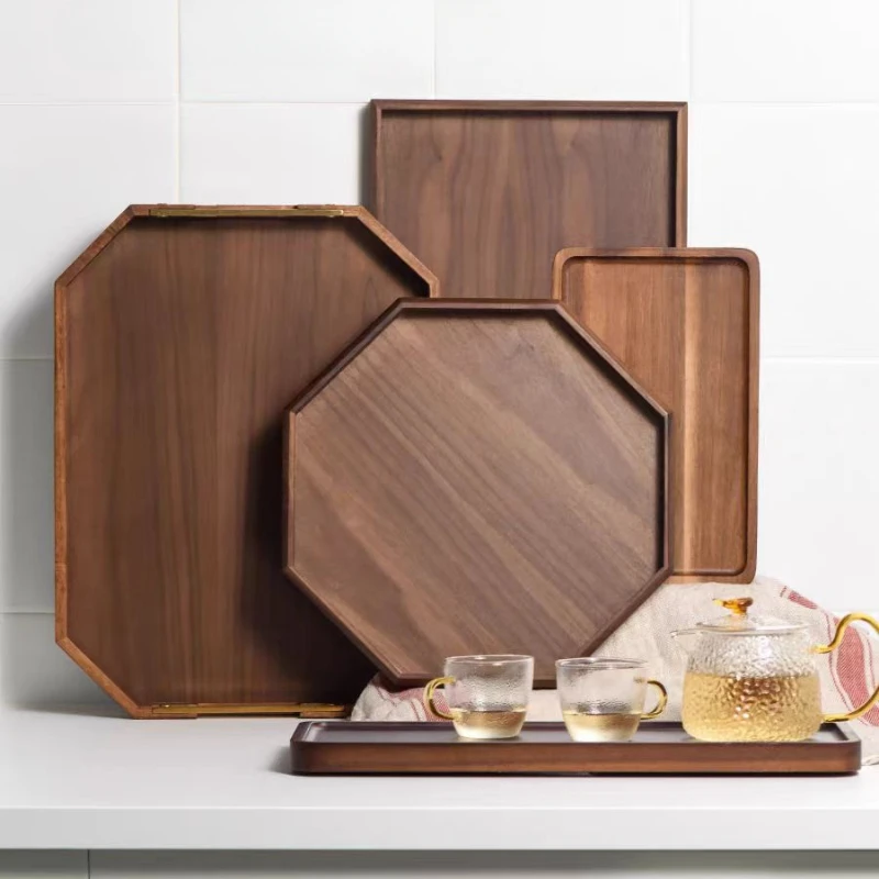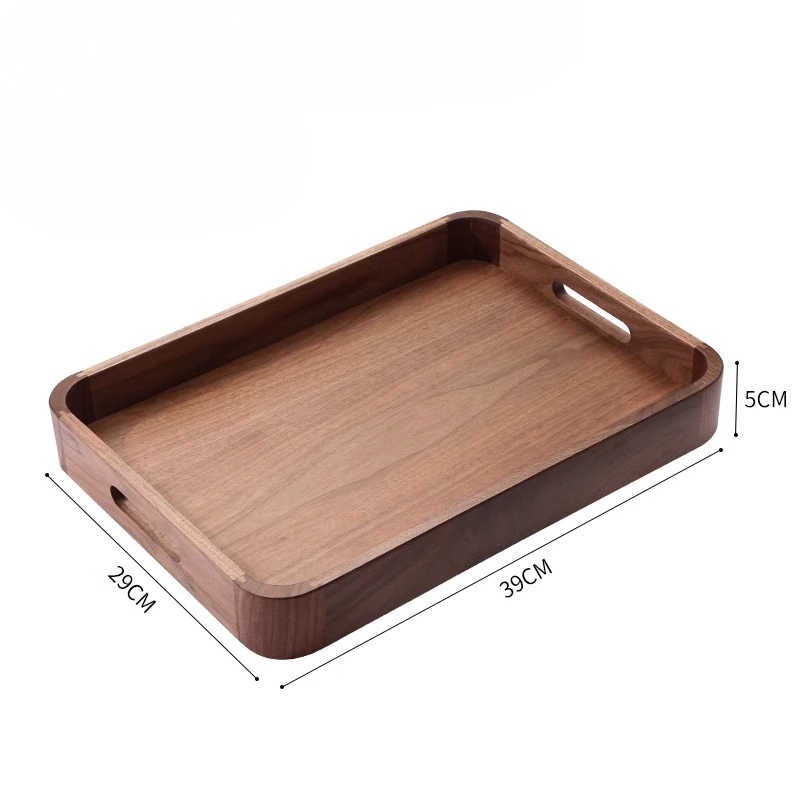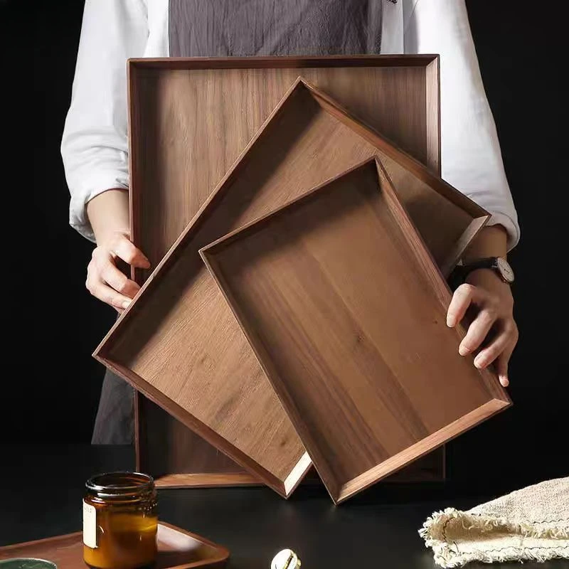 هذه صينية خشبية مربعة الشكل، مصنوعة من خشب الجوز الأسود. تستخدم لتقديم الشاي، والوجبات الخفيفة، والفواكه، والحلويات، والخبز، وأطباق العشاء. كما يمكن استخدامها لتخزين الأدوات المنزلية.