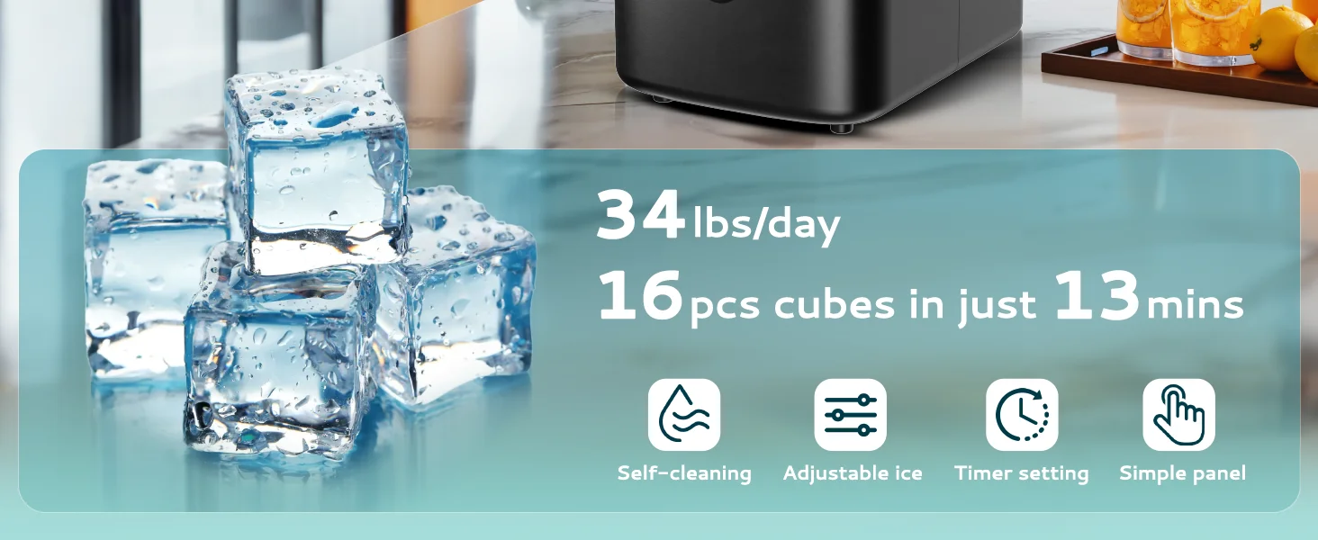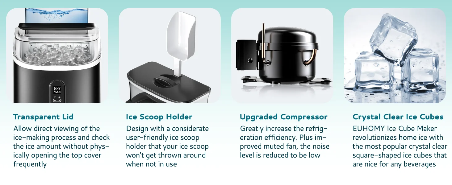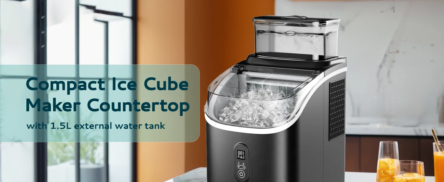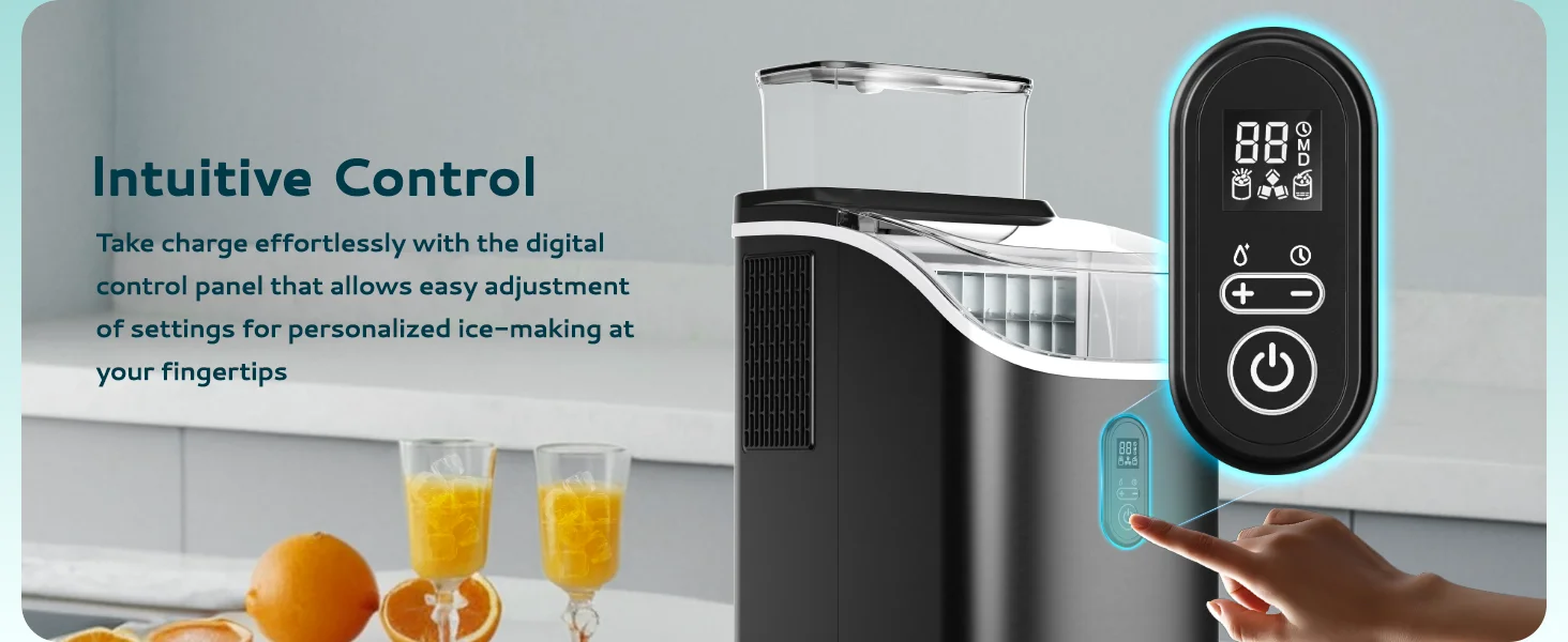 Comes with an ice basket container & ice tongs, all the accessories are included; Simply 3 steps to start making ice: Fill the water tank, Press "Start" button, then awaiting for the process finished.