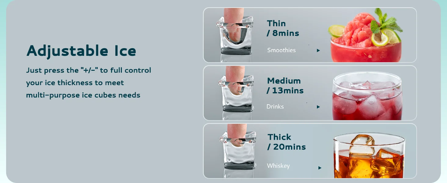 Food‑Grade stainless steel body + Food‑Safe plastic inner tank that ensures ice purity and easy cleaning. Portable & Compact design make it convenient to take out for different occasions.