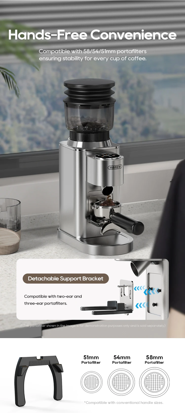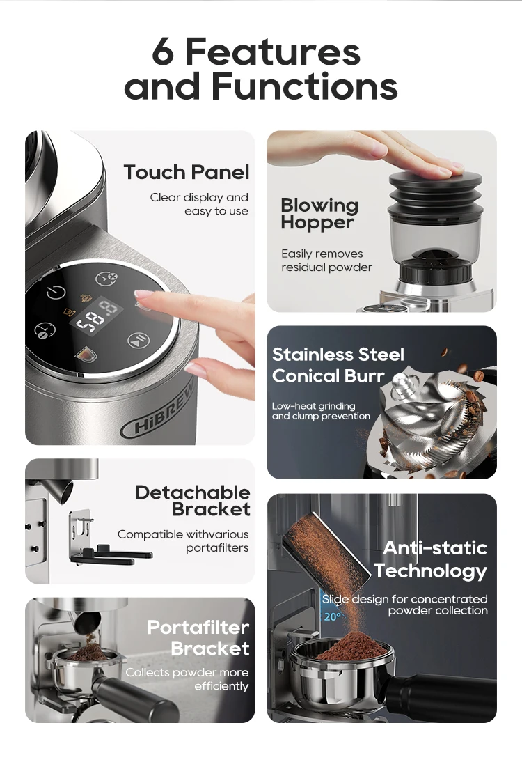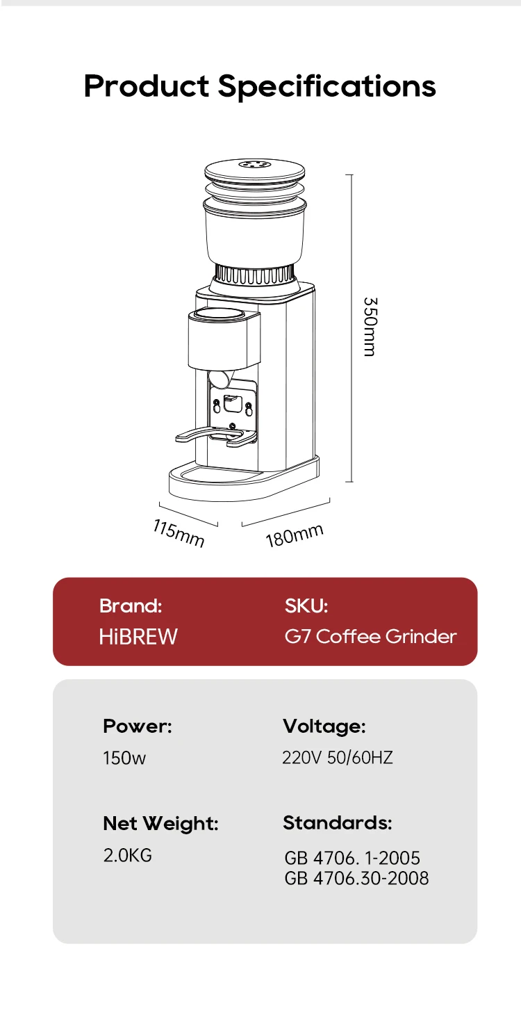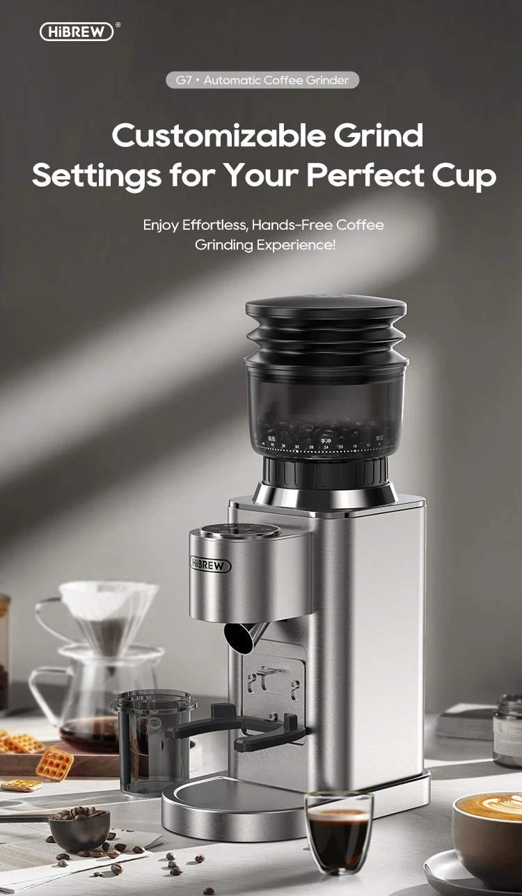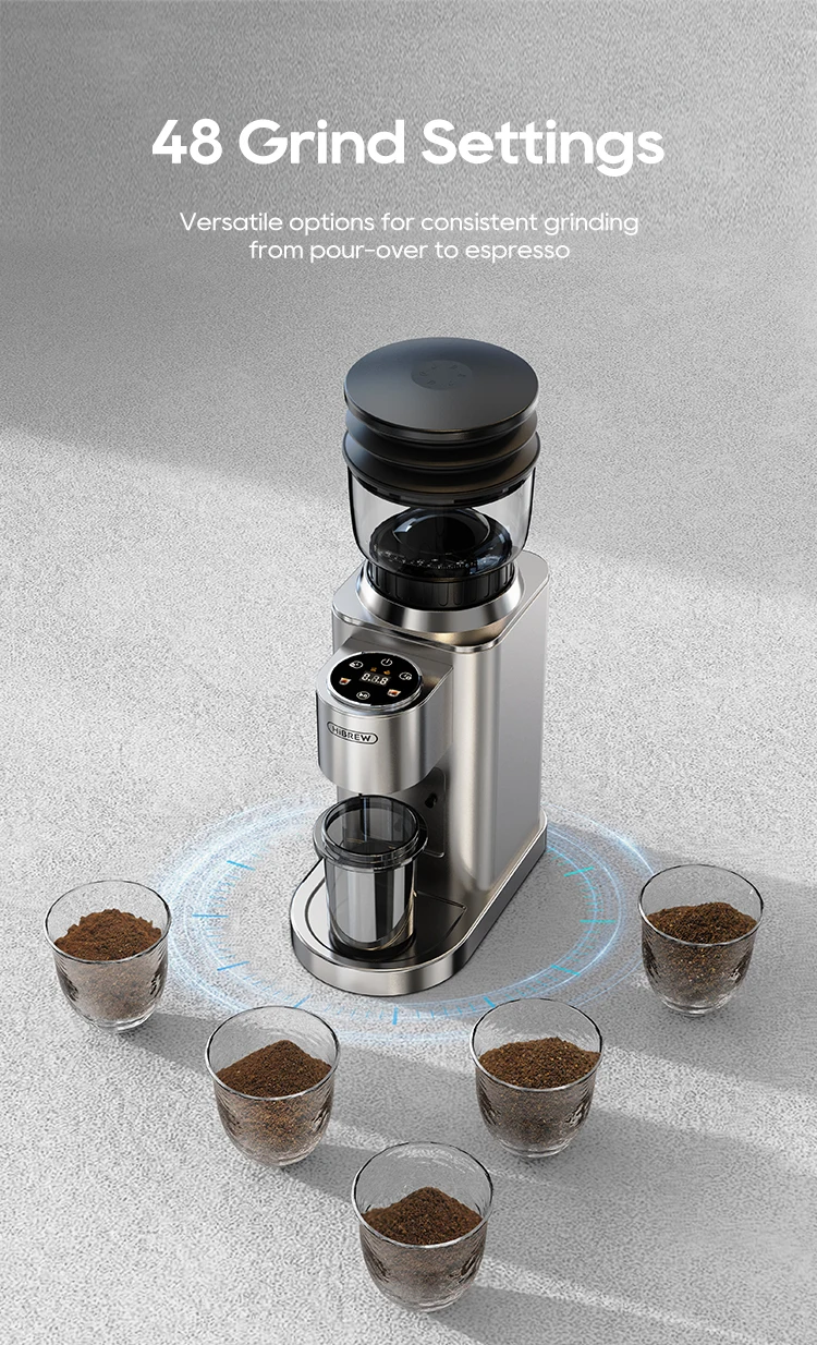 HiBREW Automatic Burr Mill Electric Coffee Grinder with 48 Gears for Espresso American Coffee Pour Over Visual Bean Storage G7