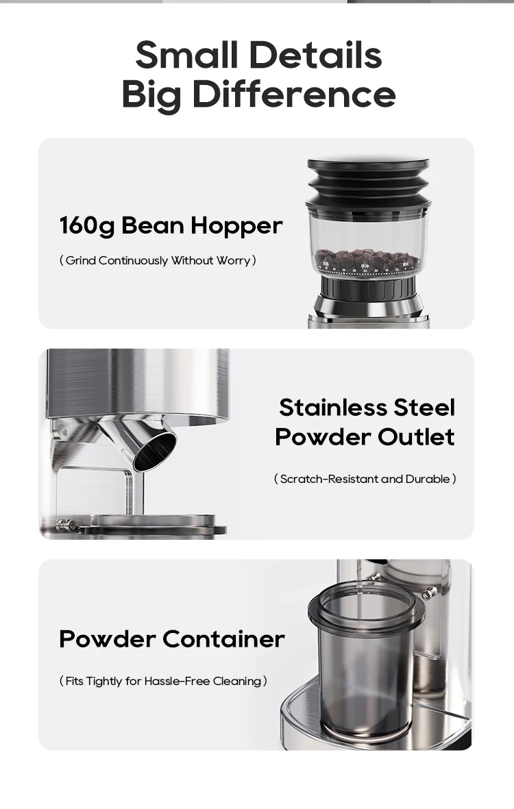 مقارنة بين مطحنة قهوة بتقنية مانعة للكهرباء الساكنة وأخرى بدونها