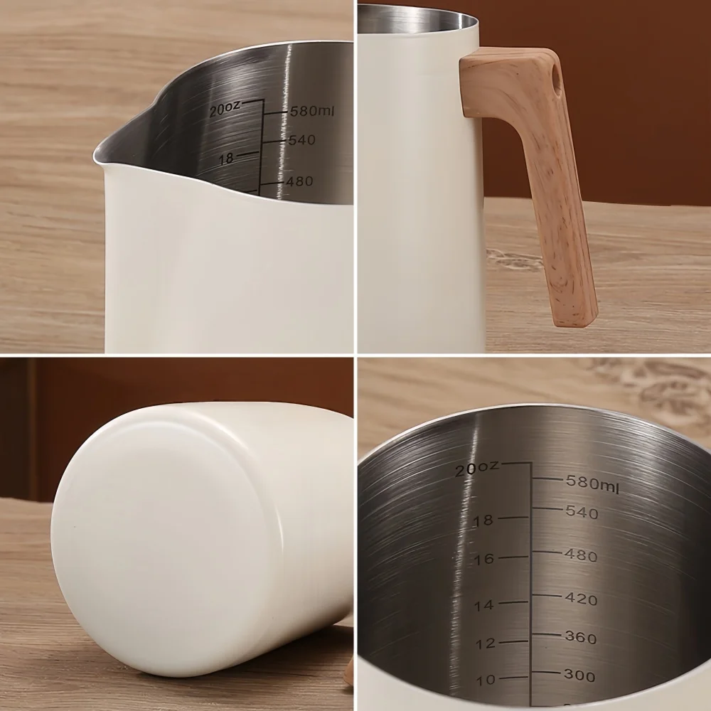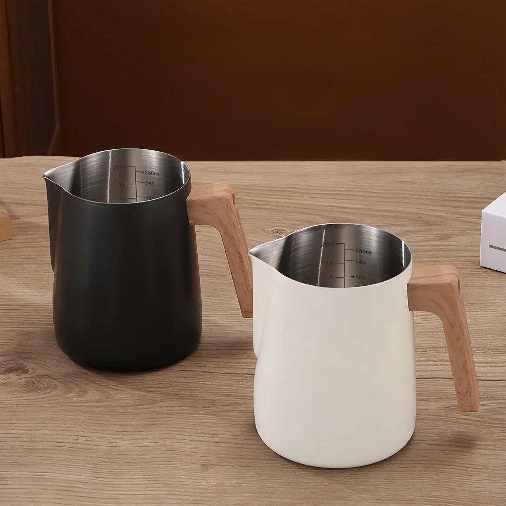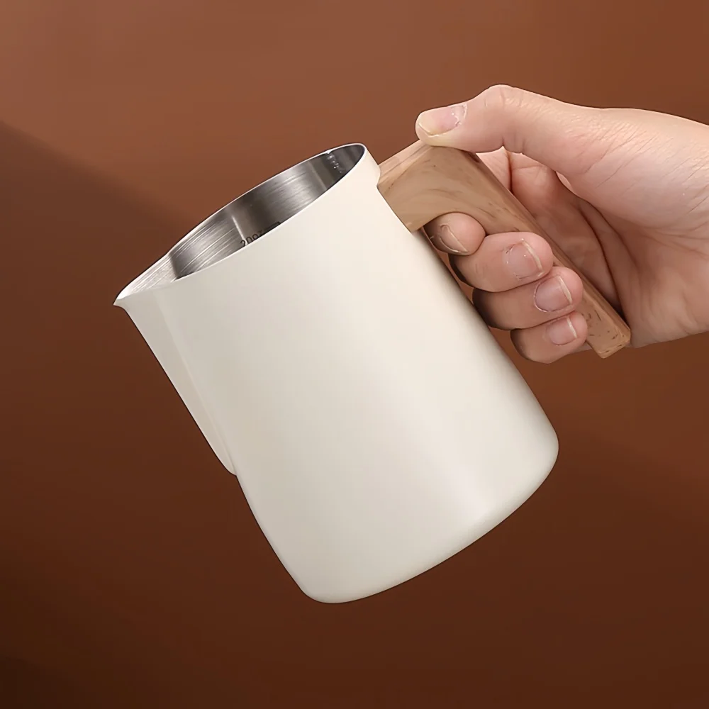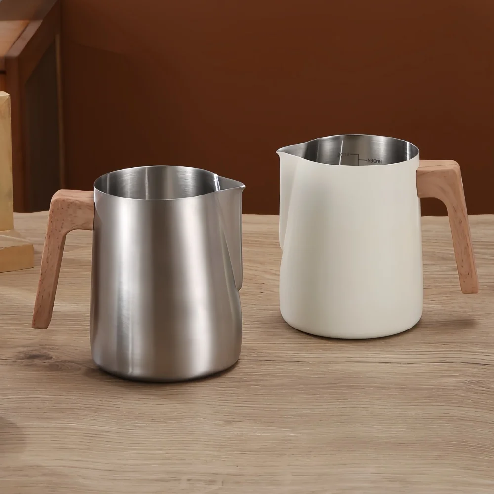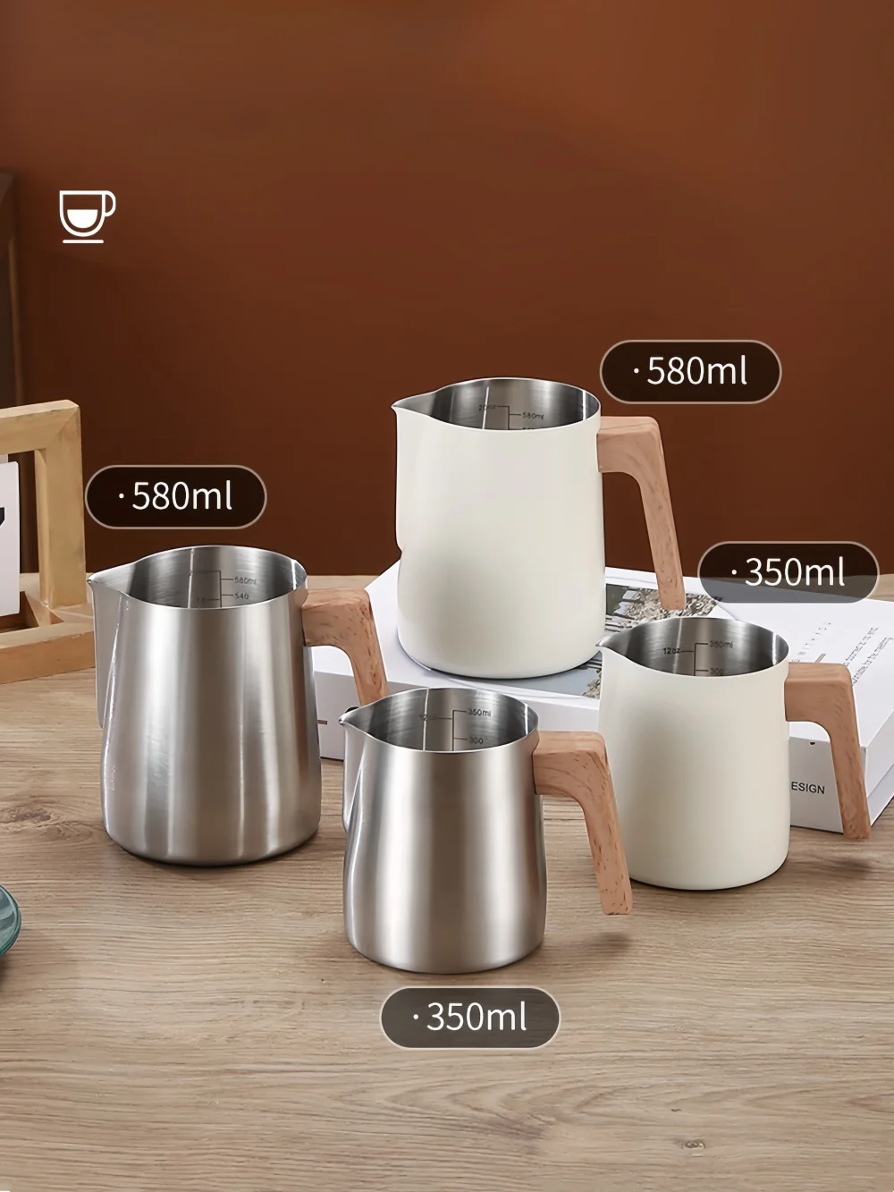 Coffee Milk Frothing Pitcher Jug Anti-scald Wood Grain Handle 304 Stainless Steel Precision Scale Professional Coffee Utensils