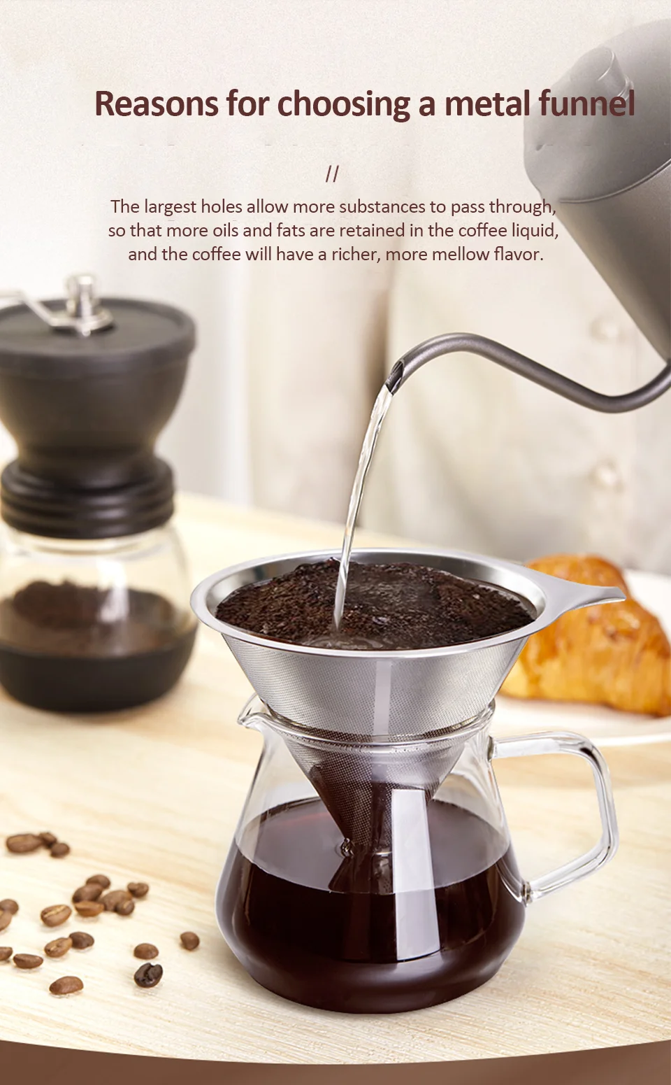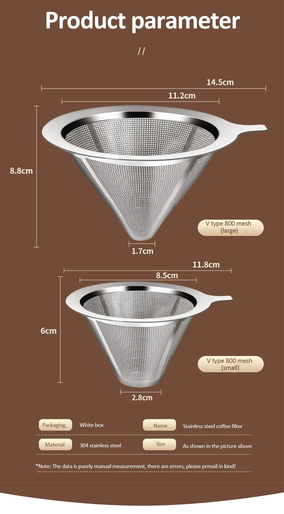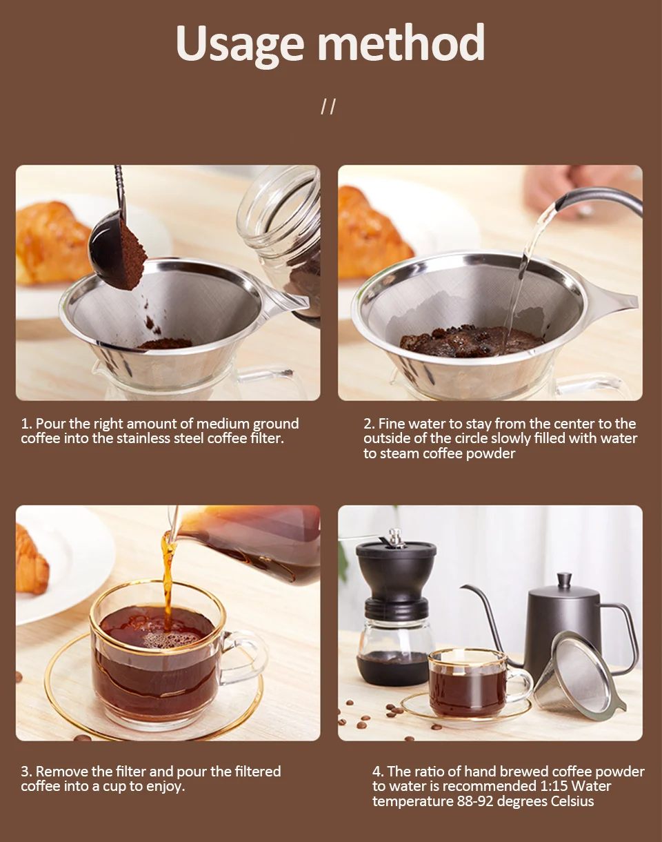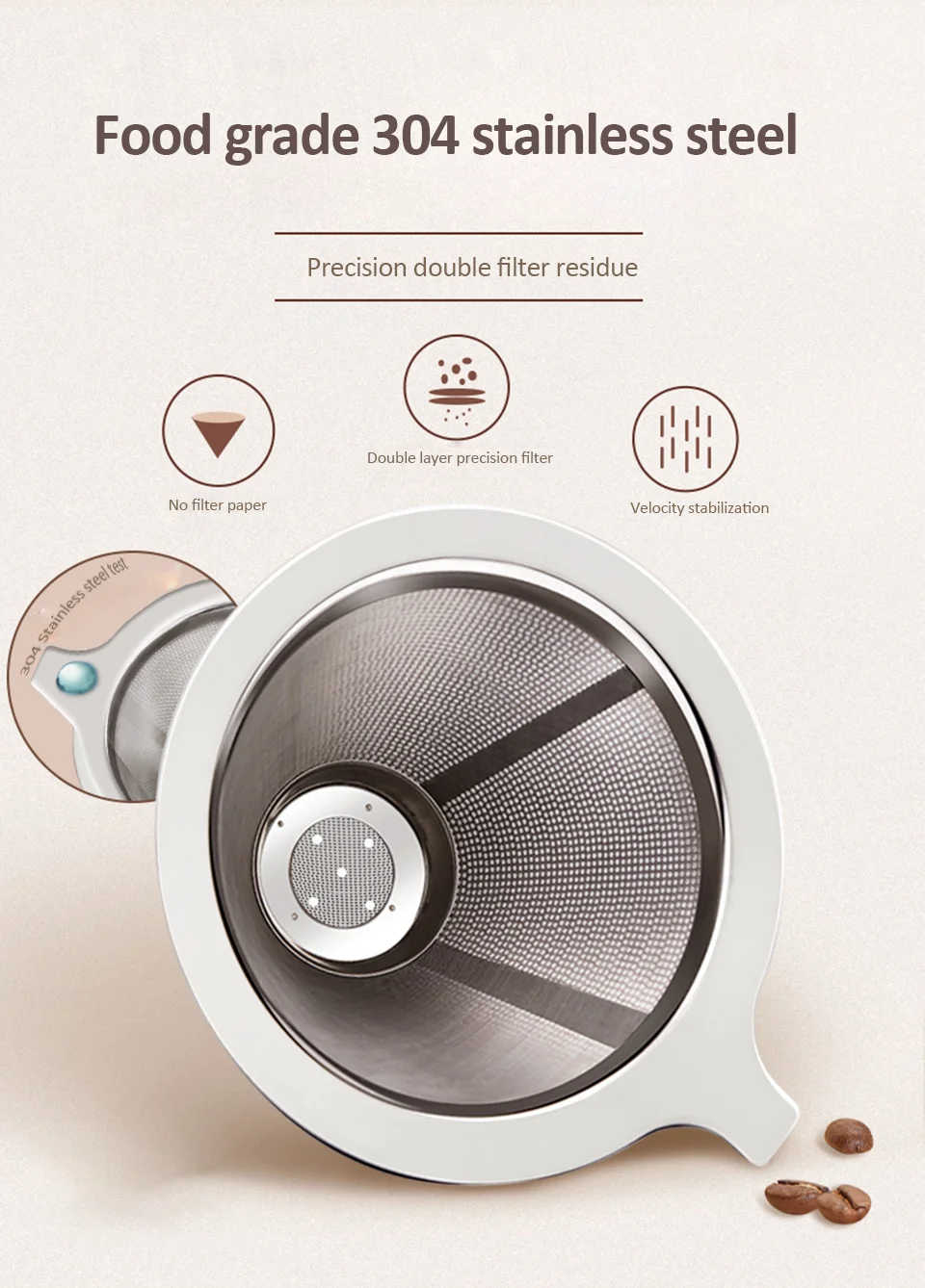 -Double layer design: This stainless steel coffee filter adopts a double-layer design, without the need for filter paper, ensuring efficient filtration and excellent durability while saving filter paper.