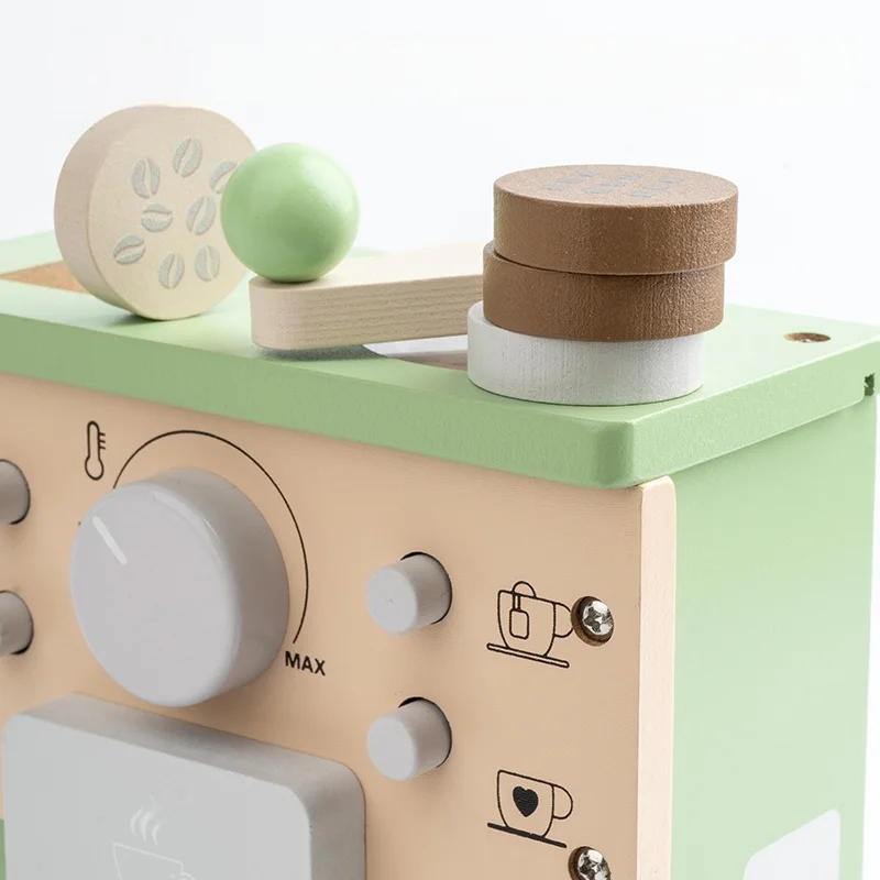 Original Design: Our coffee maker toy, as a play kitchen accessory, features a unique and charming design with beautiful colors that are sure to captivate your child's imagination. It's not just a toy, but also a delightful decorative piece that adds a touch of elegance to any playroom or bedroom