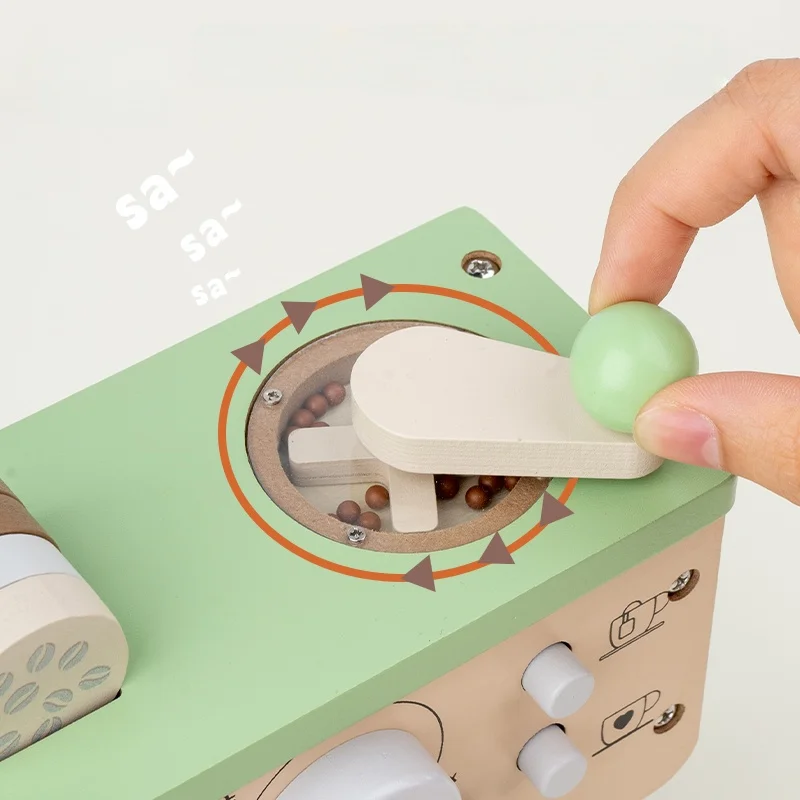 Kids Play Coffee Maker Set: The coffee playset comes complete with 1 coffee maker, 1 milk , 2 tea cups, 2 spoons, 2 saucers, and 4 flavor coffee beans. Grind coffee beans has a "Sa-Sa" sound, making the pretend play more engaging. Its built-in storage design allows all accessories to be stored inside the coffee maker
