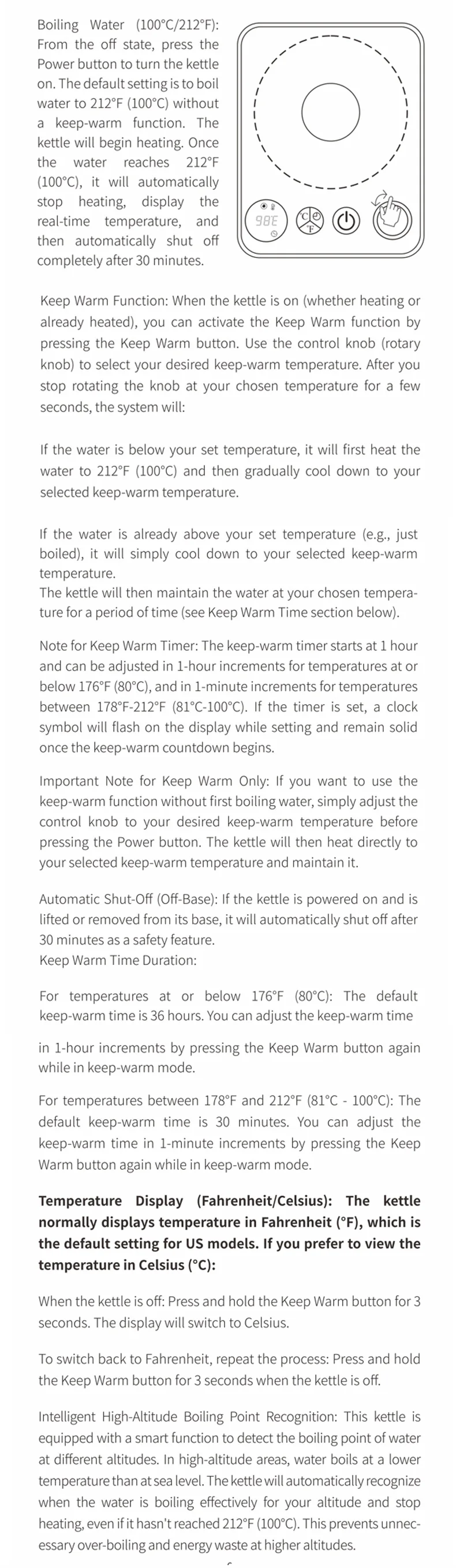 2. Smart Temperature Control: Manually set and hold any temperature within the wide range to perfectly match your coffee beans or tea leaves. The "Hold" function maintains the temperature for up to 24 hours.