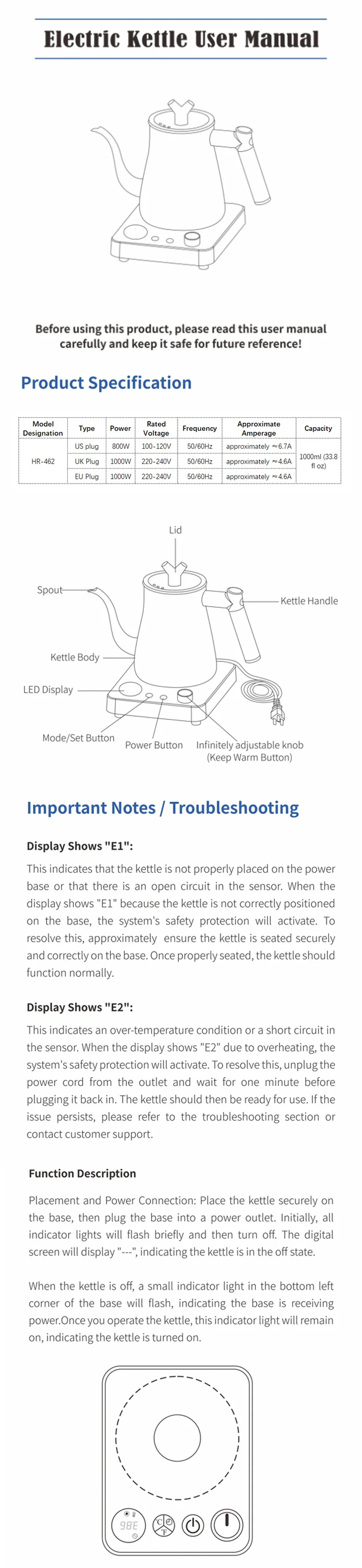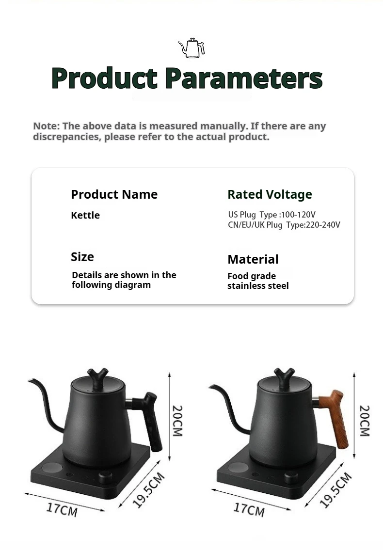 1L Smart Gooseneck Electric Kettle - Product Specifications & Details